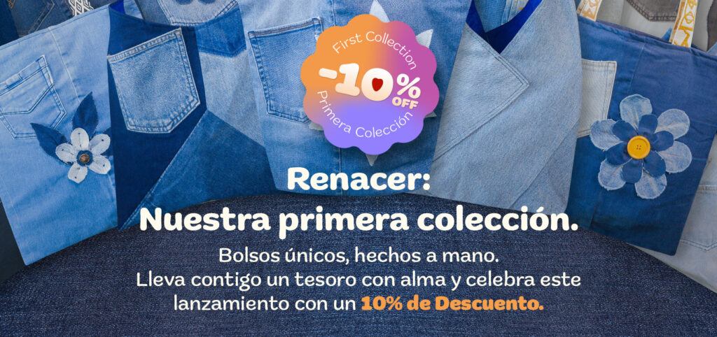 La colección Renacer simboliza lo que somos: la belleza de lo que vuelve a florecer. Cada bolso representa una segunda oportunidad, tanto para los materiales reciclados como para las mujeres que los transforman.